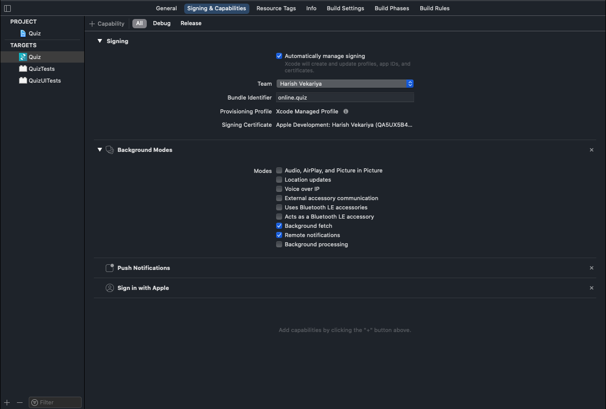 - Open your Project's Runner.xcworkspace file in Xcode, and Add your Team [Your Apple Developer ID] and also Insert GoogleService-Info.plist file [Downloaded From Firebase Project] inside folder named Runner.