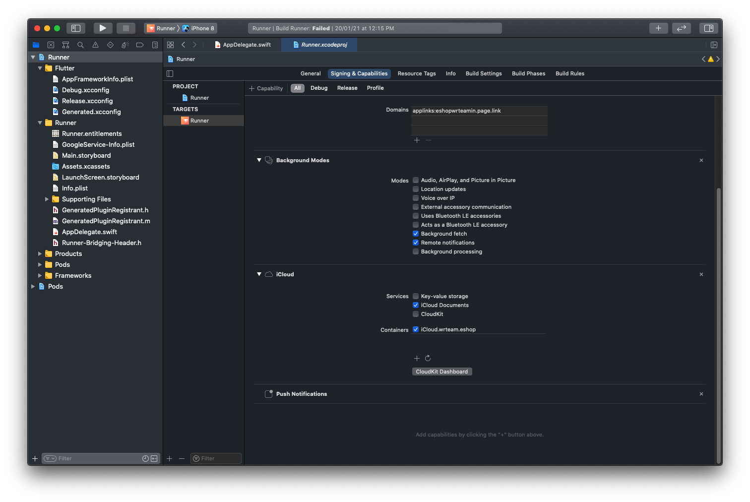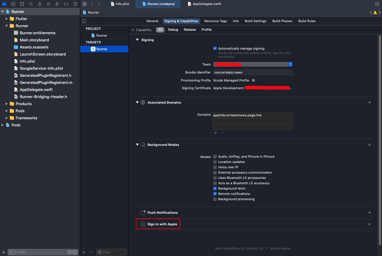 Next, open the ios ‣ Runner ‣ AppDelegate.swift