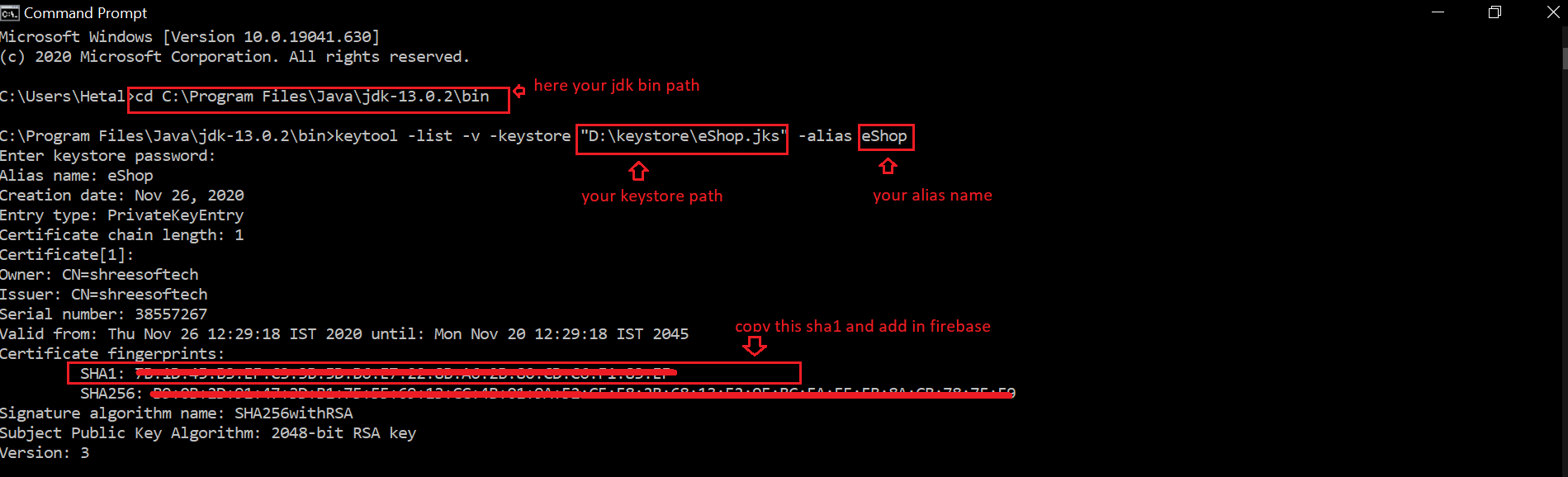 keytool -genkey -v -keystore c:\Users\USER_NAME\upload-keystore.jks -storetype JKS -keyalg RSA -keysize 2048 -validity 10000 -alias upload